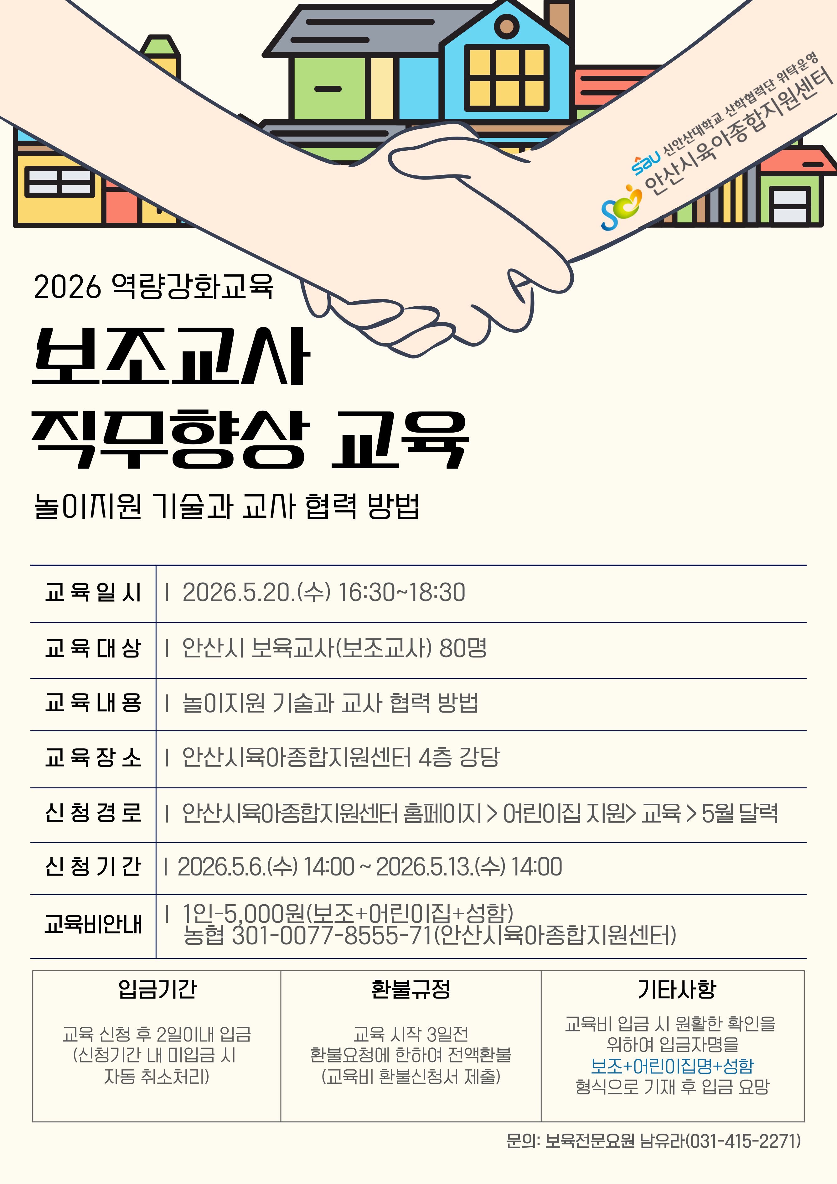 (농협) 301-0077-8555-71 (예금주: 안산시육아종합지원센터)