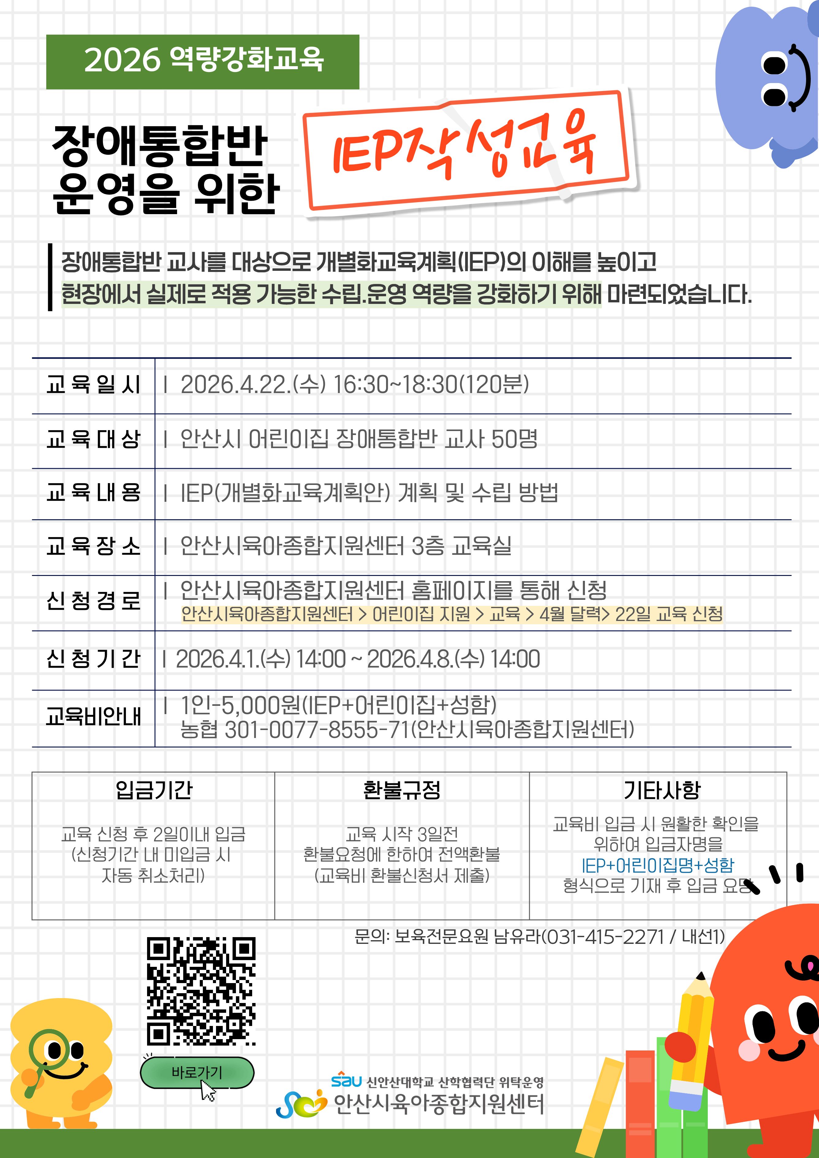 (농협) 301-0077-8555-71 (예금주: 안산시육아종합지원센터)