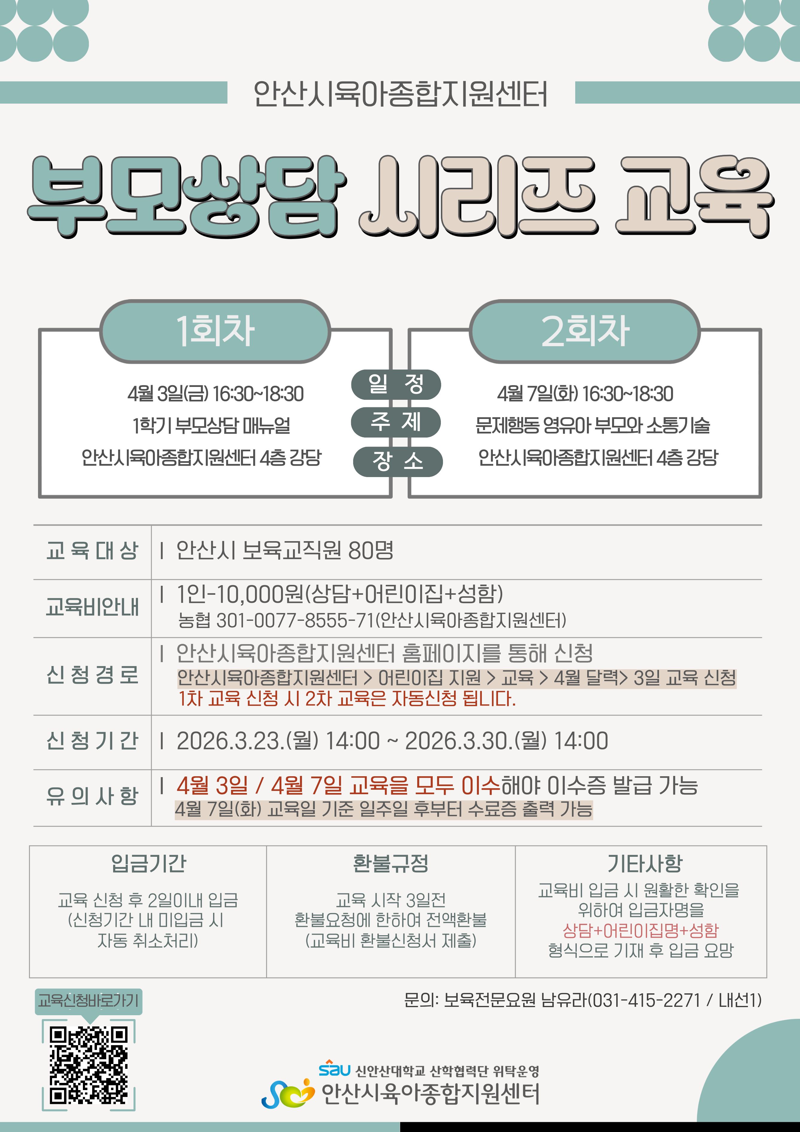 (농협) 301-0077-8555-71 (예금주: 안산시육아종합지원센터)