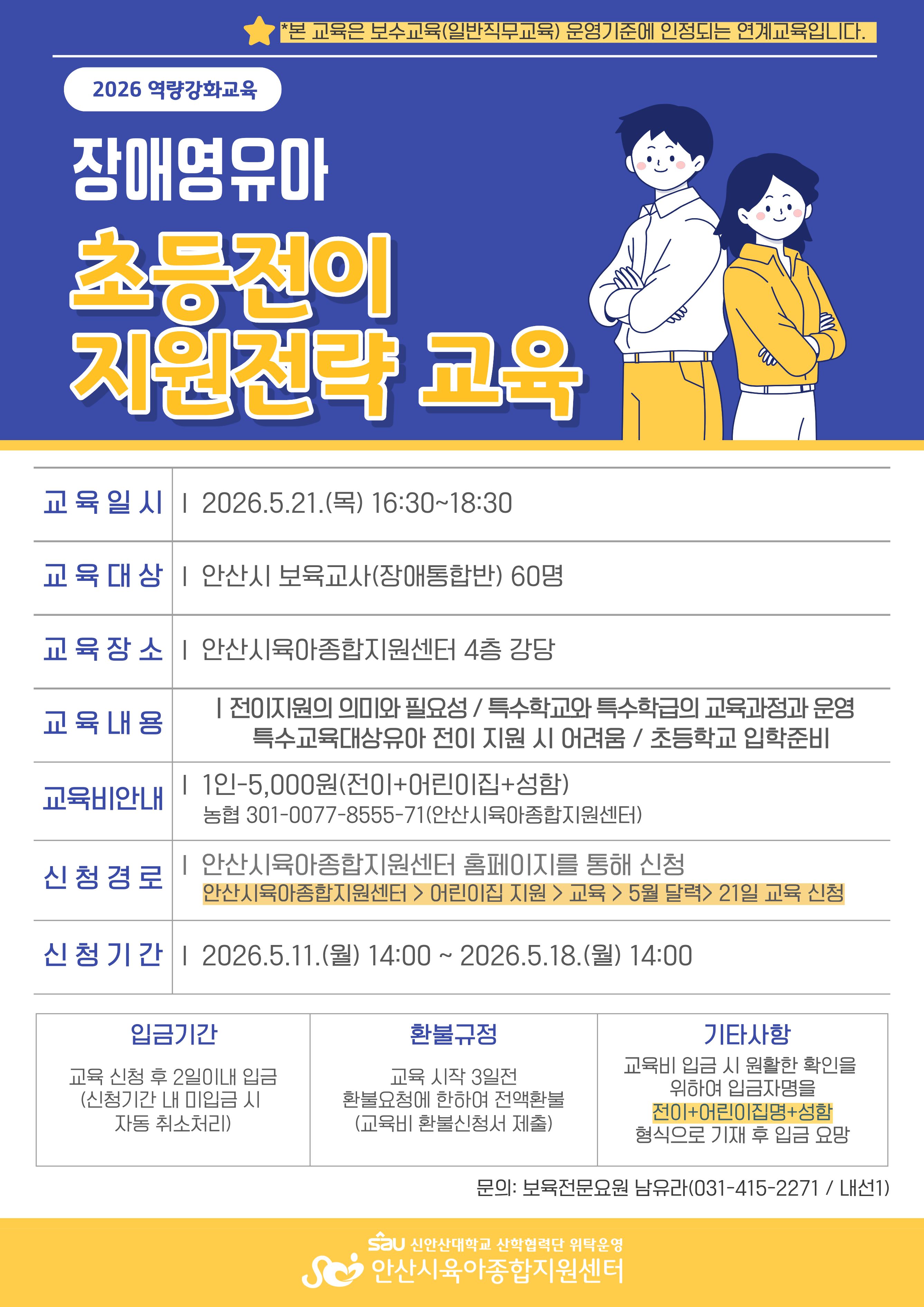 (농협) 301-0077-8555-71 (예금주: 안산시육아종합지원센터)