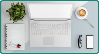 온라인 교육을 위해 카메라와 마이크가 내장된 전자 기기를 준비합니다.