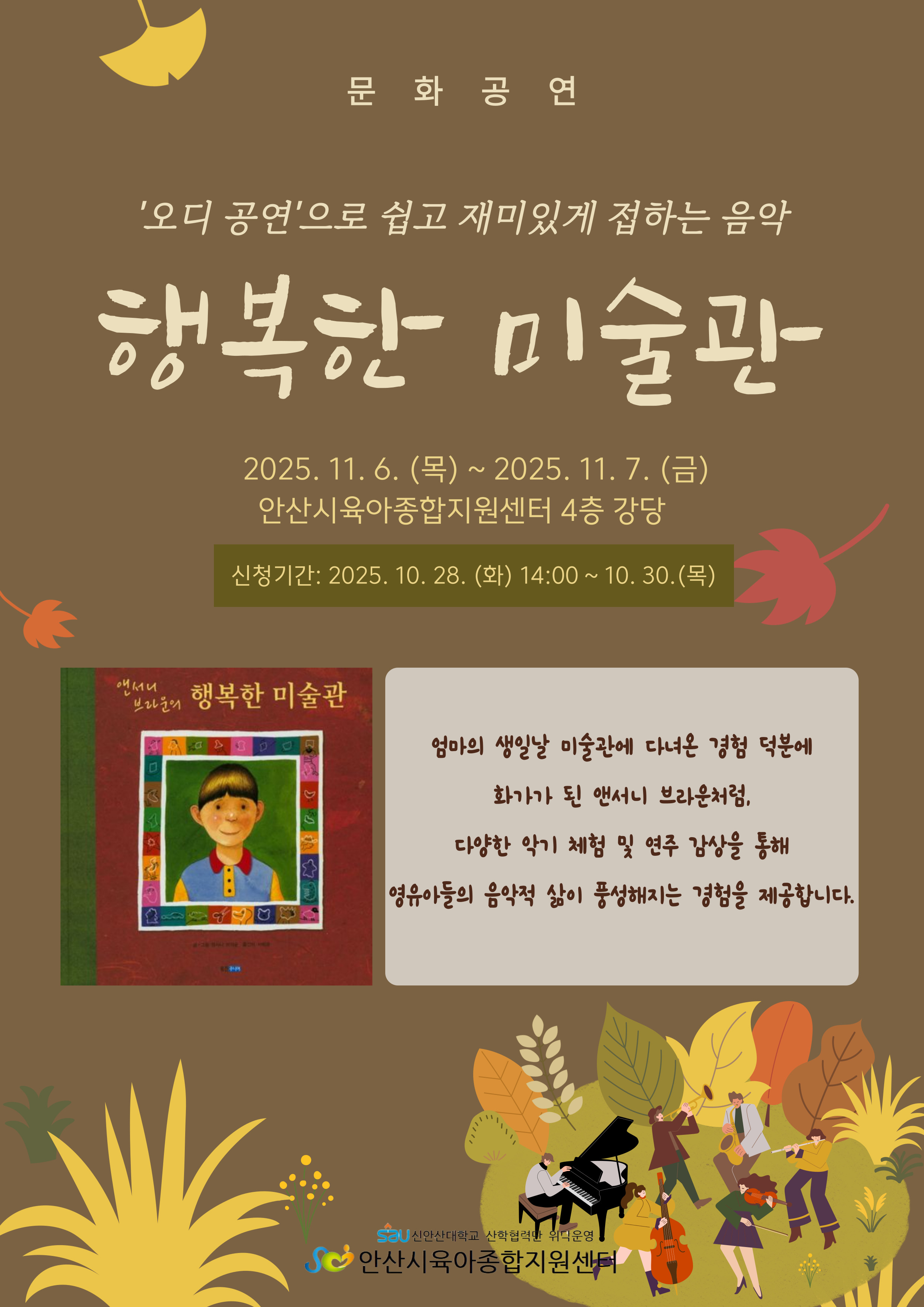 「행복한 미술관」 공연을 진행하오니 많은 신청 바랍니다.