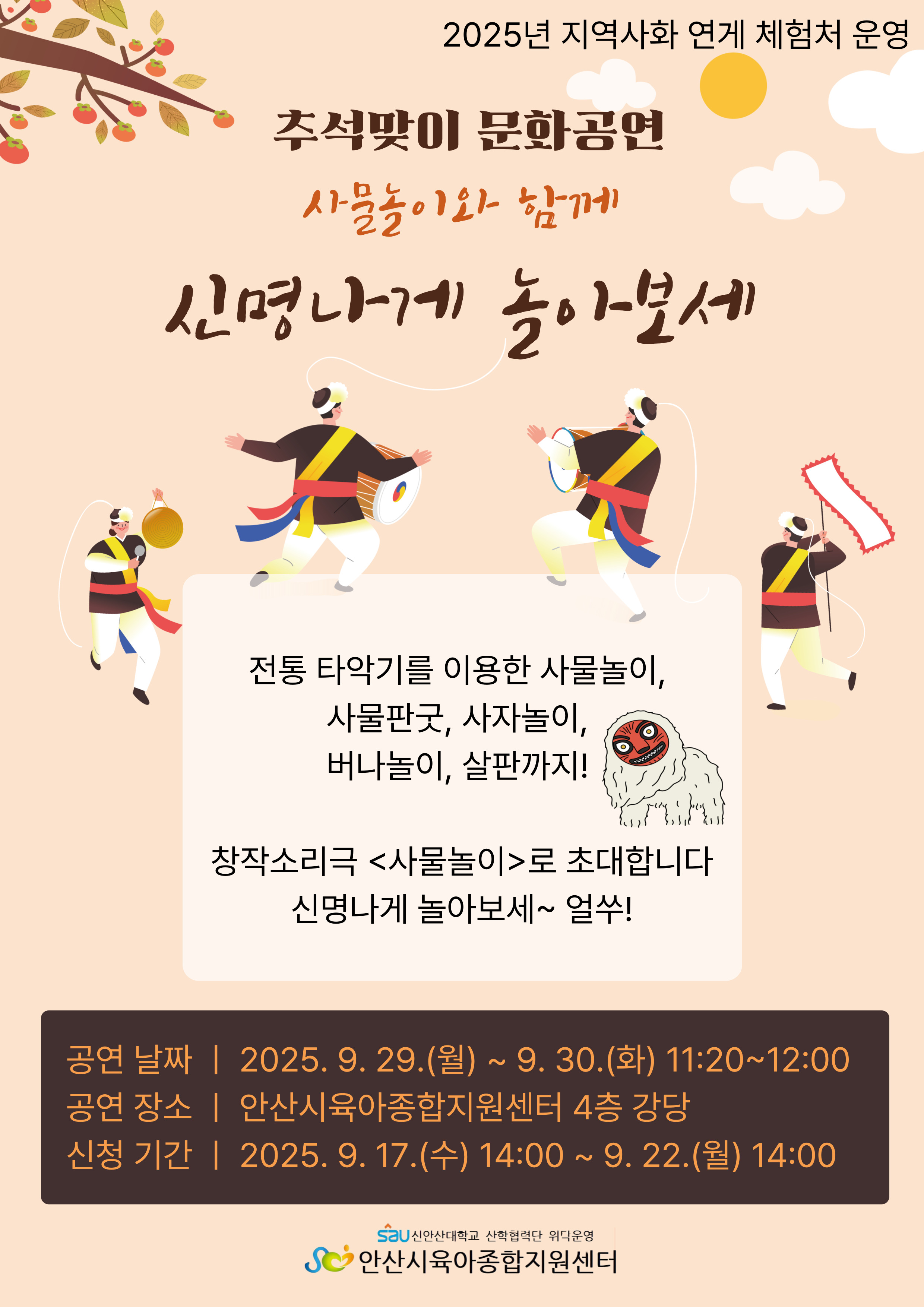 [유치원대상] 사물놀이와 함께 신명나게 놀아보세(9/30)