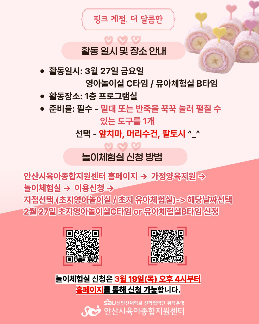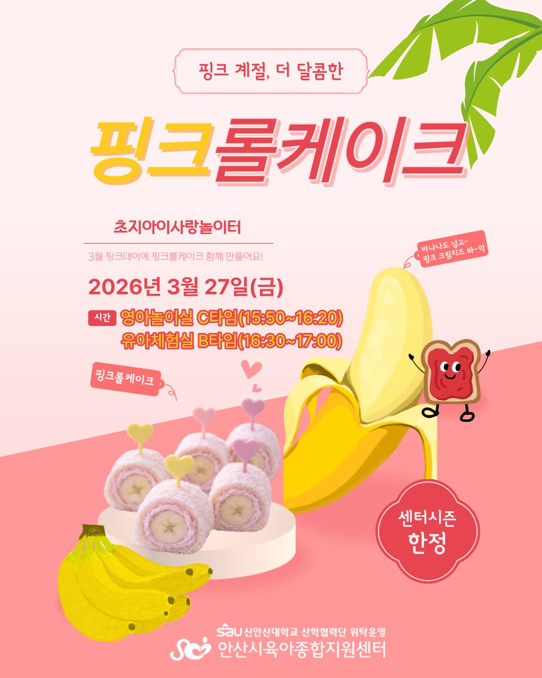 내용: 식빵에 핑크 크림치즈를 바르고 바나나를 넣어 달콤한 핑크 롤케이크를 만들어봐요!