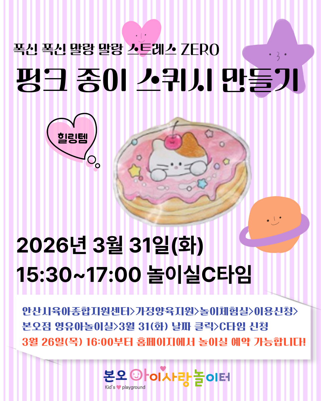 [본오아이사랑놀이터] 3월 이벤트데이 '핑크 종이 스퀴시 만들기'