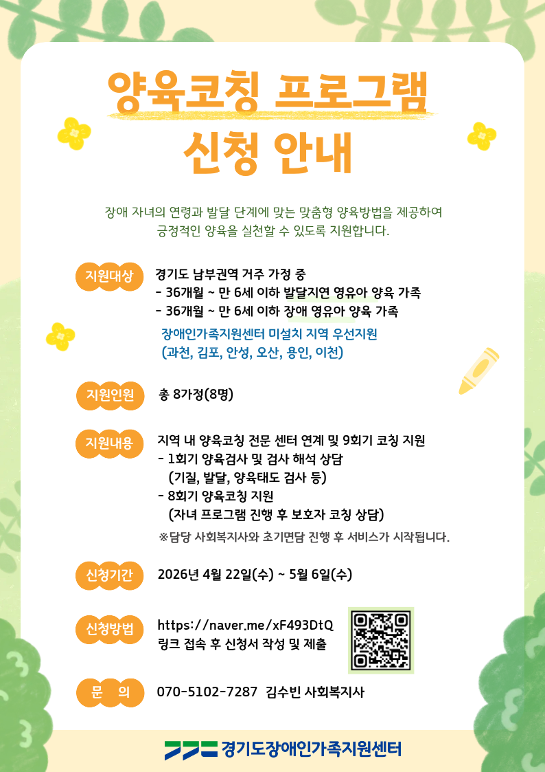 [경기도] [경기도장애인가족지원센터] 2026년 양육코칭 프로그램 신청 안내