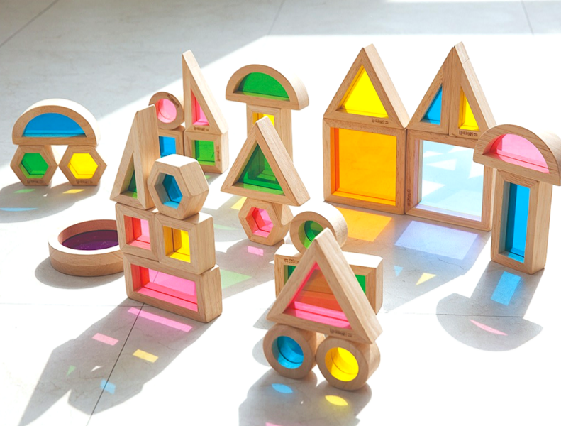 비치담은 원목 블록 테두리 안에 다양한 색깔의 아크릴이 끼워져 있습니다. 햇빛에 비추면 형형색색의 빛 그림자가 비쳐지지요. 또 블록을 통해 사물을 바라보세요. 초록세상, 보라세상 다채로운 광경이 펼쳐집니다.