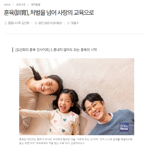 [i-자람 뉴스클리핑]훈육(訓育), 처벌을 넘어 사랑의 교육으로