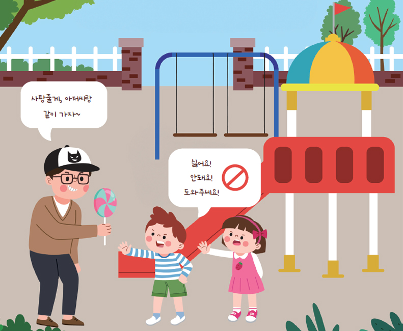 아이들은 친절한 말 한마디에도 쉽게 마음을 여는 특성이 있어 위험 의도를 스스로 구별하기 어렵기 때문이다.