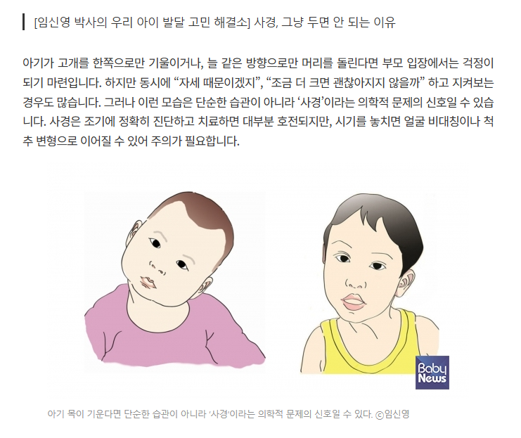 [i-자람 뉴스클리핑아기 목이 기울어요? ‘사경’일 수 있습니다