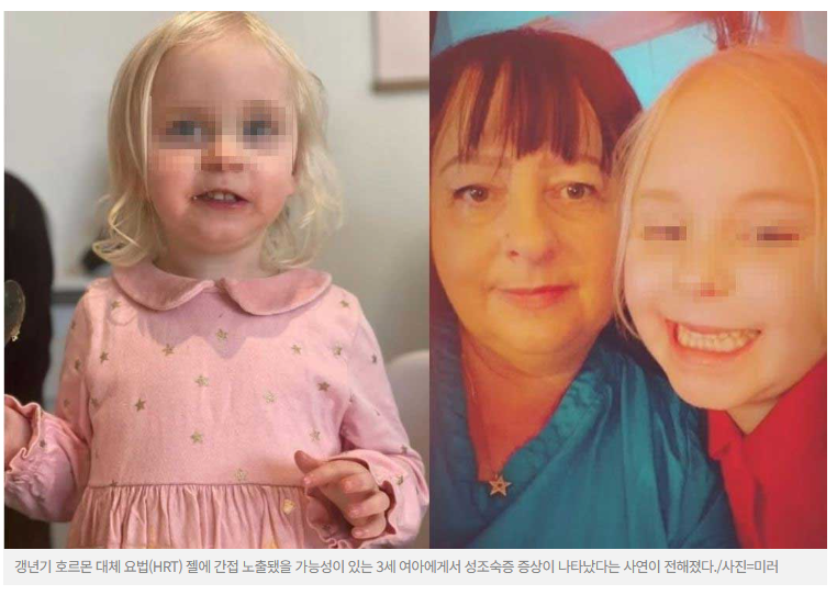 엄마가 사용하던 갱년기 호르몬 대체 요법(HRT) 젤에 간접 노출됐을 가능성이 있는 3세 여아에게서 성조숙증 증상이 나타났다는 사연이 전해졌다.