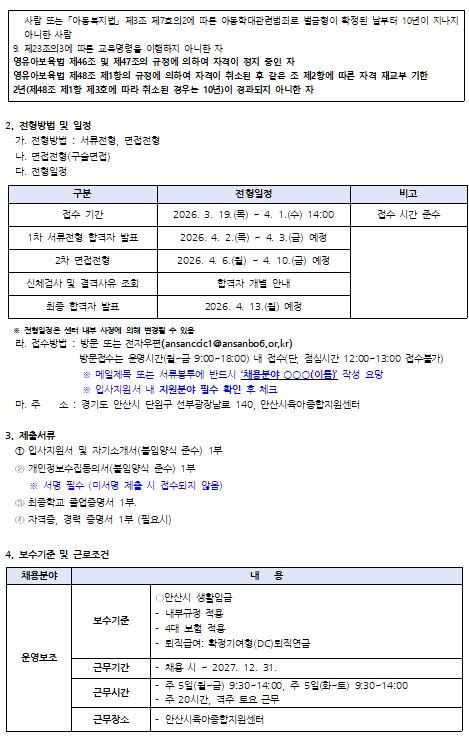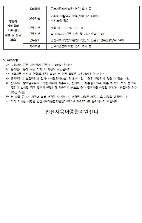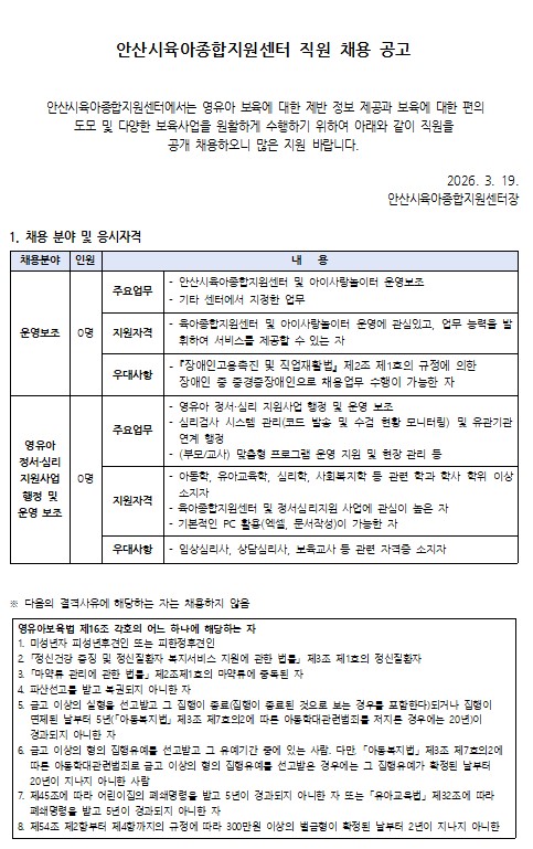 [안산시육아종합지원센터] 직원 채용 공고