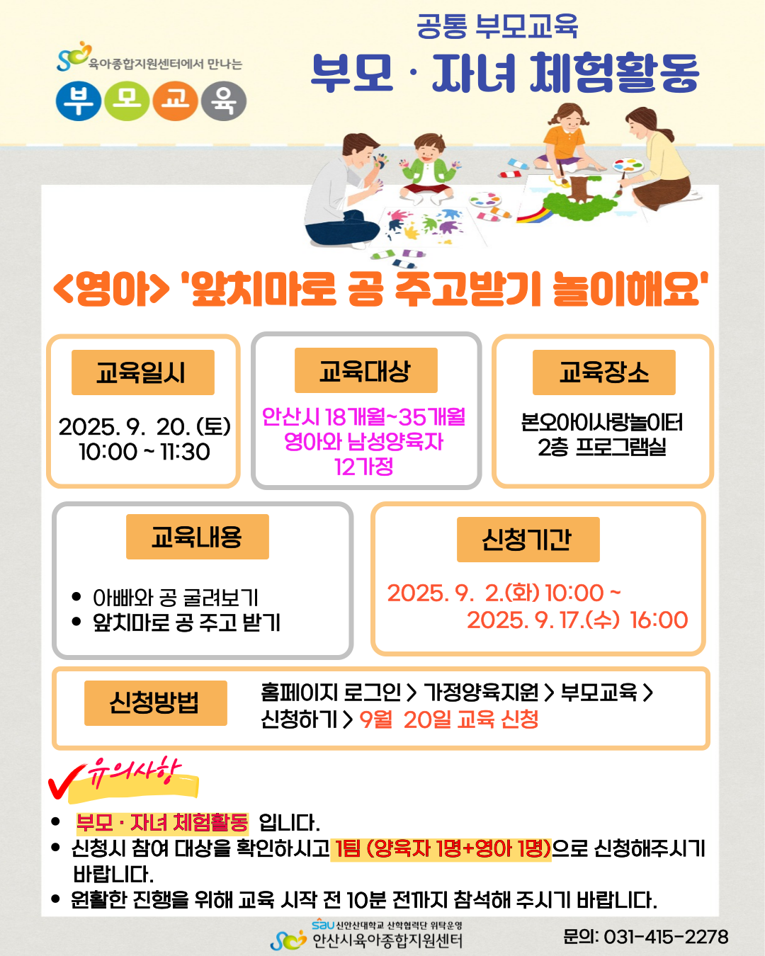 ※ 부모·자녀 체험활동으로 자녀 1명 + 양육자 1명으로 참여 가능하오니 참고바랍니다.