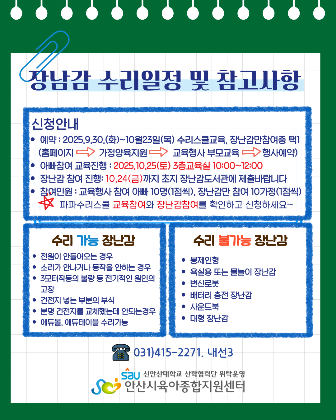 ■ 교육 취소는 최소 2일 전까지 장난감도서관으로 전화연락 바랍니다.