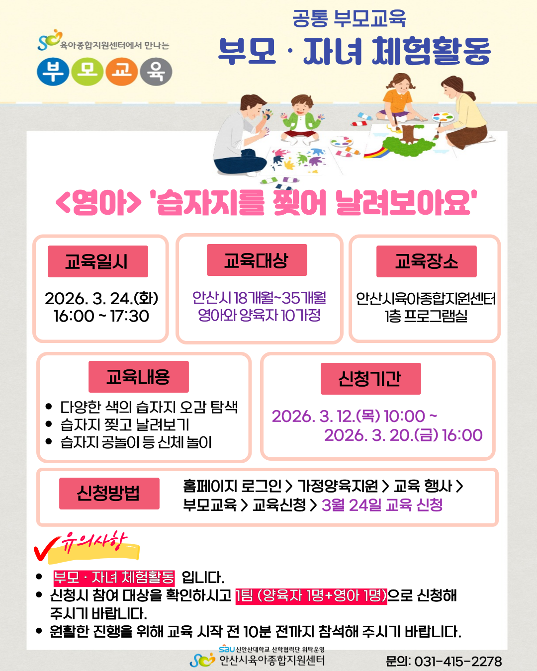 | 교육장소 | 안산시육아종합지원센터 1층 프로그램실 |
