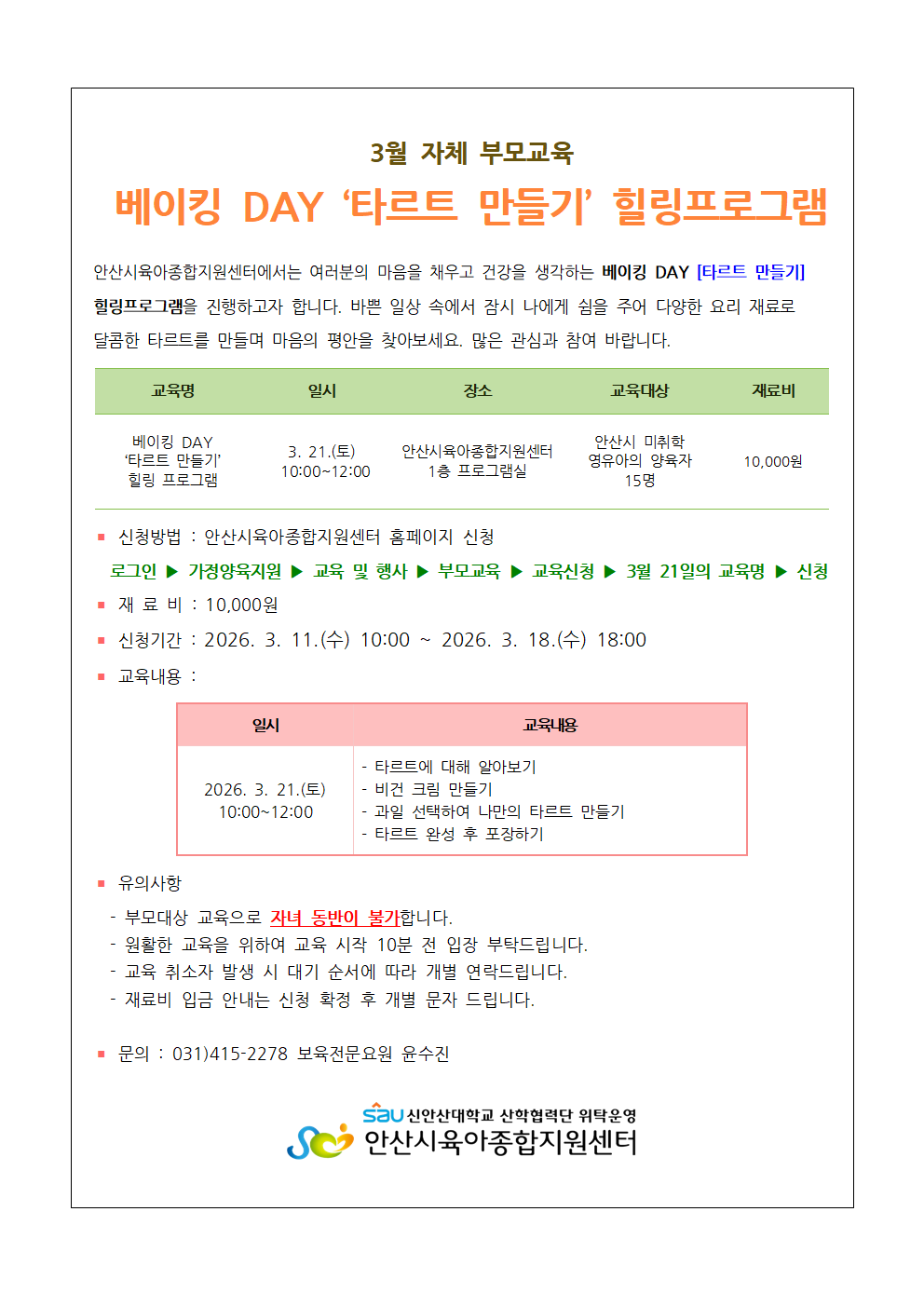 베이킹 DAY '타르트 만들기' 힐링프로그램