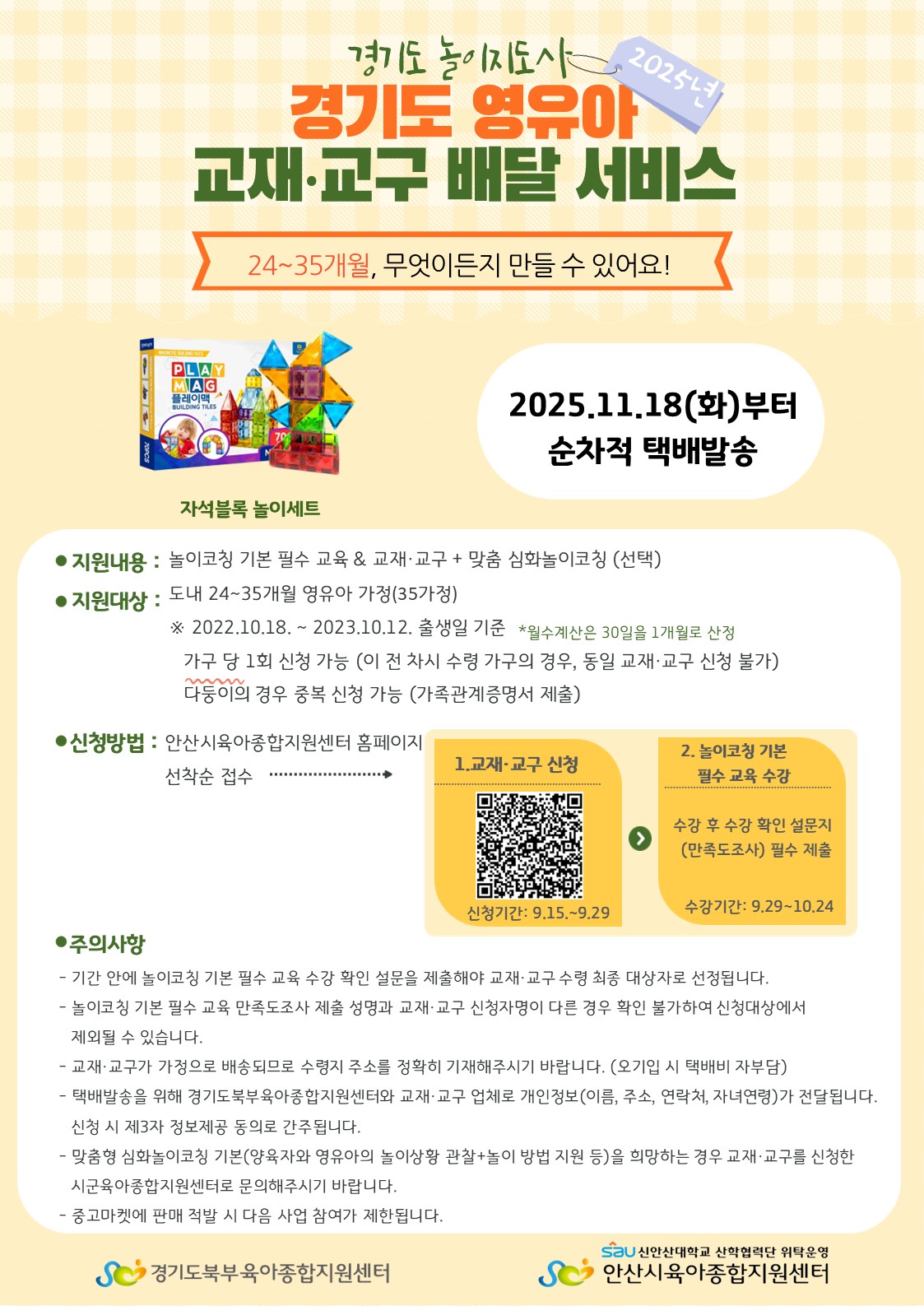 경기도 영유아 교재교구 배달서비스 3차 모집합니다.