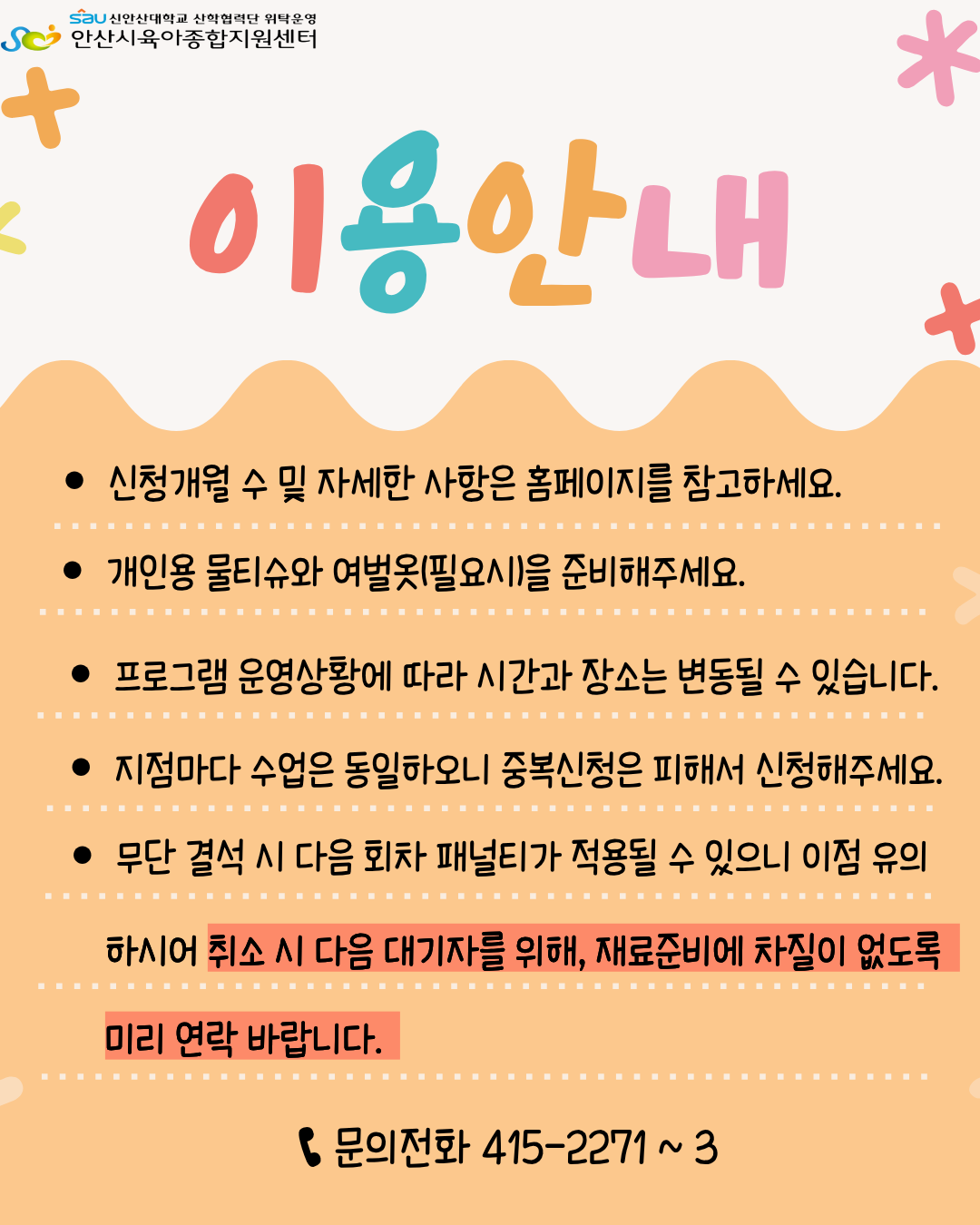 교육장소 안산시육아종합지원센터 초지 1층 프로그램실