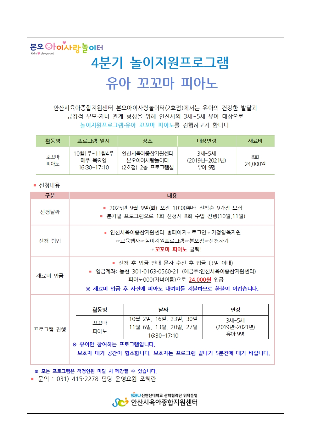입금계좌 | 농협 301-0163-0560-21 안산시육아종합지원센터 |