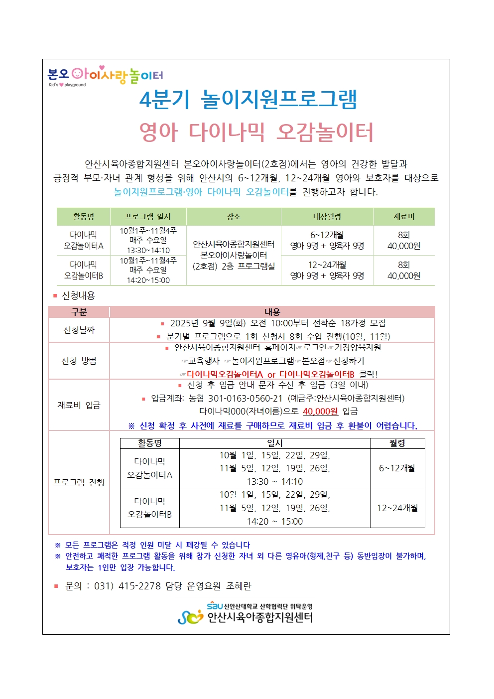 입금계좌 | 농협 301-0163-0560-21 안산시육아종합지원센터 |