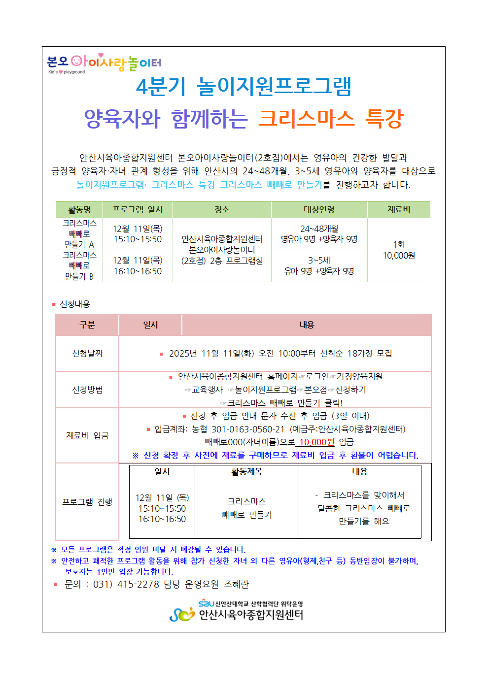 * 본오아이사랑놀이터(2호점)에서 대면으로 진행되오니 우측의 유의사항을 잘 읽어보시고 신청해주시기 바랍니다. *
