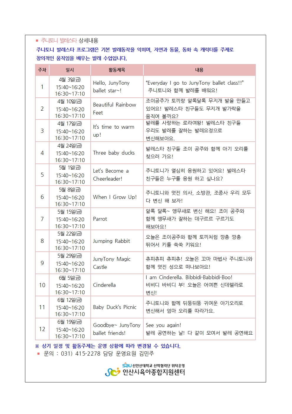 ■ 프로그램 시작 5분전 센터에 도착해주시길 부탁드립니다.
