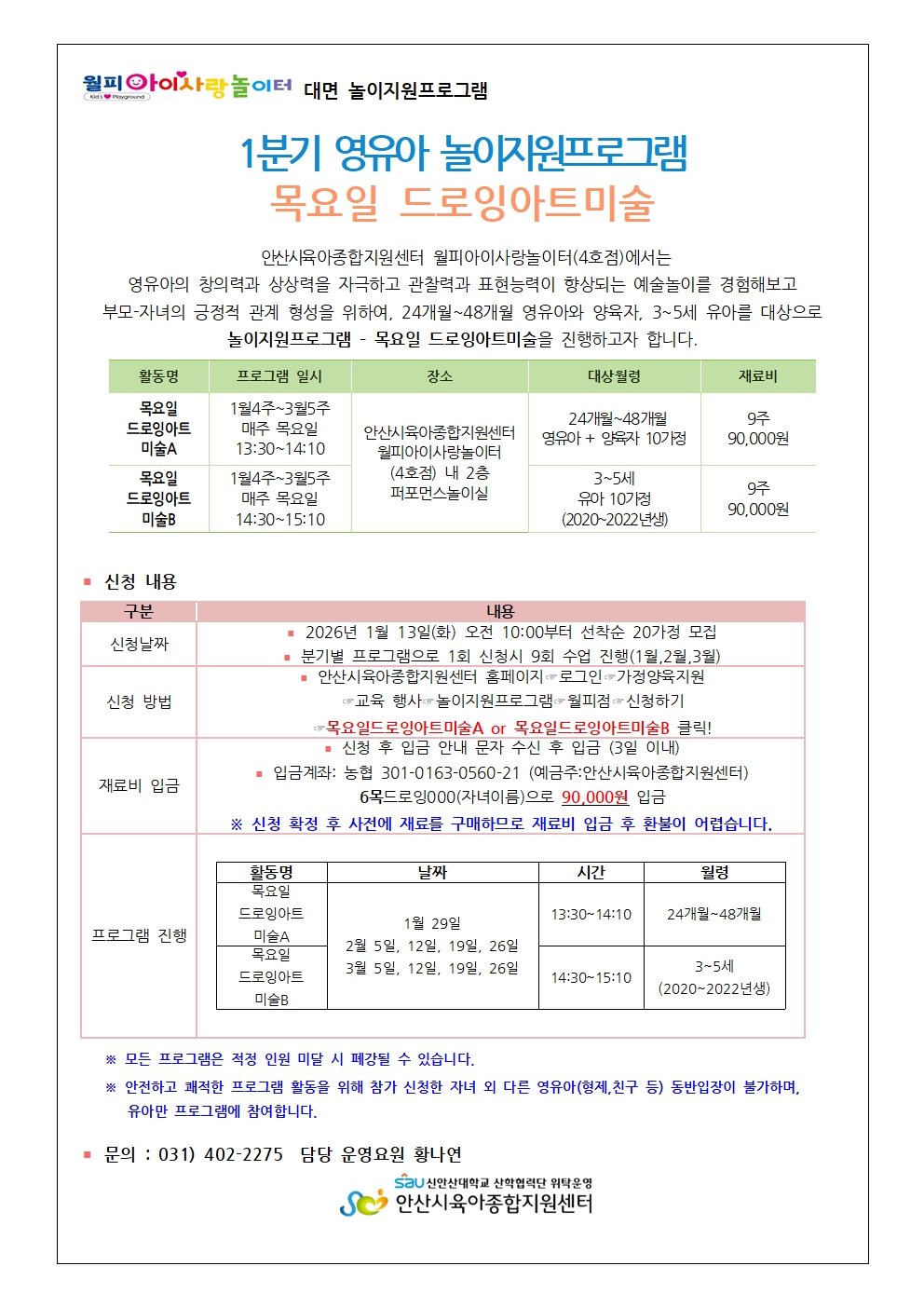 * 월피아이사랑놀이터(4호점)에서 대면으로 진행되오니 우측의 유의사항을