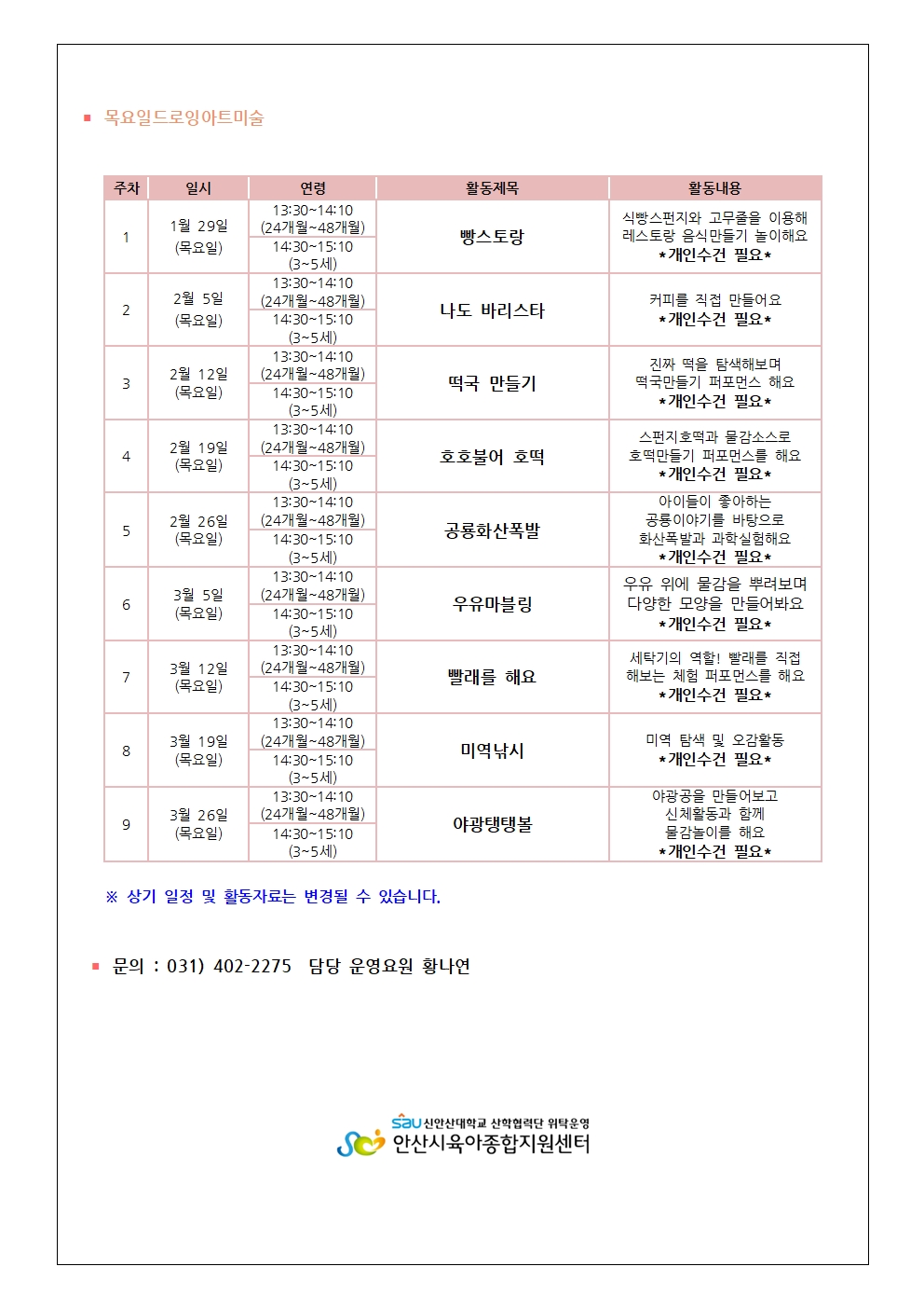 ■ 프로그램 시작 5분전 센터에 도착해주시길 부탁드립니다.