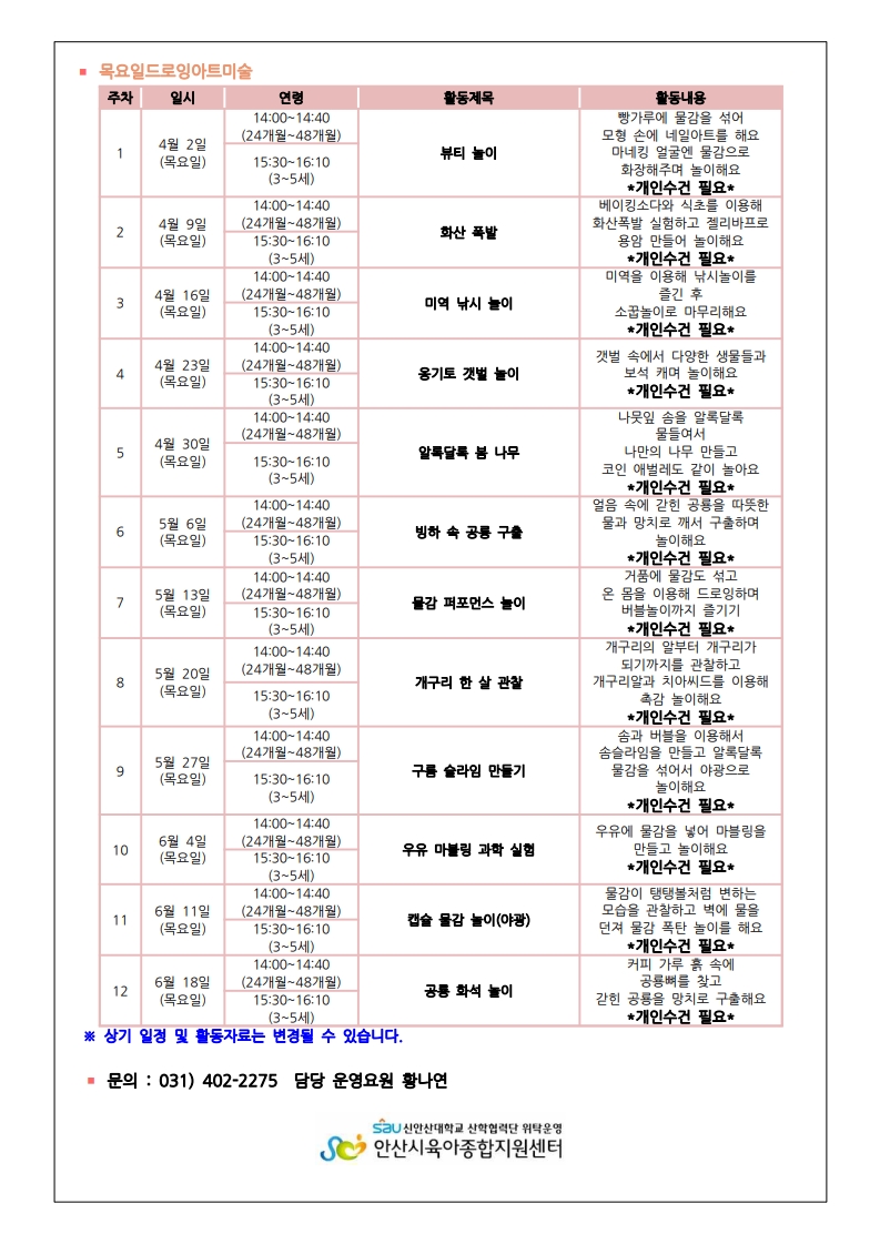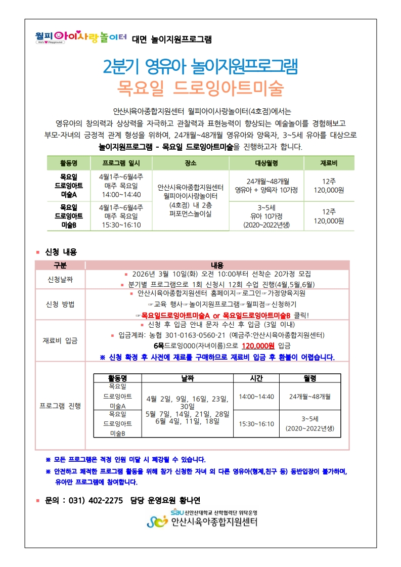 | 입금계좌 | 농협 301-0163-0560-21 안산시육아종합지원센터 |