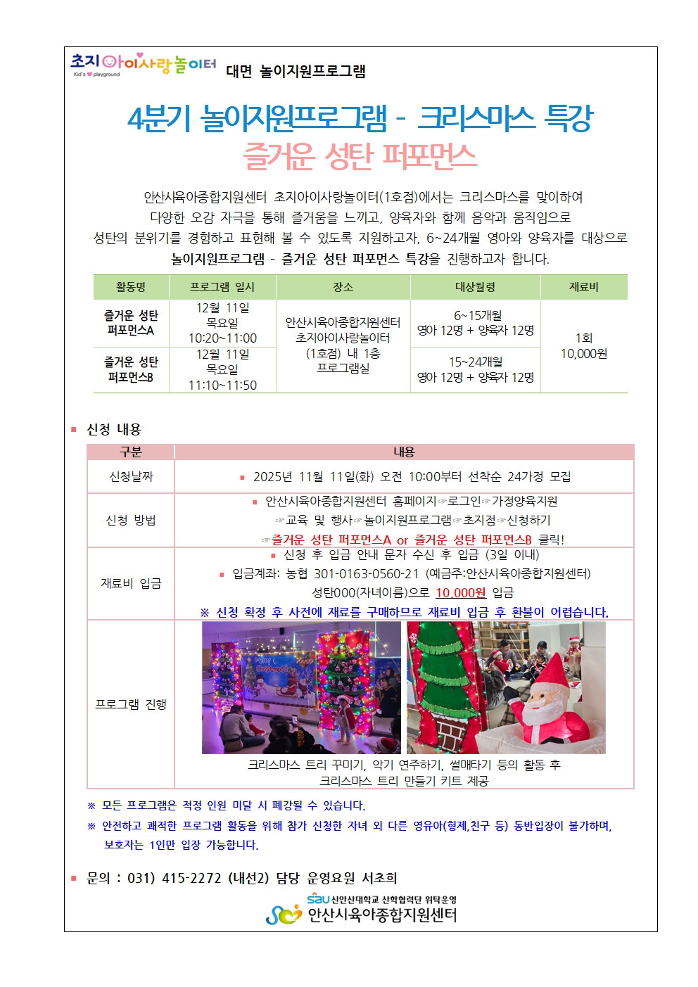 * 초지아이사랑놀이터(1호점)에서 대면으로 진행되오니 우측의 유의사항을 잘 읽어보시고 신청해주시기 바랍니다. *
