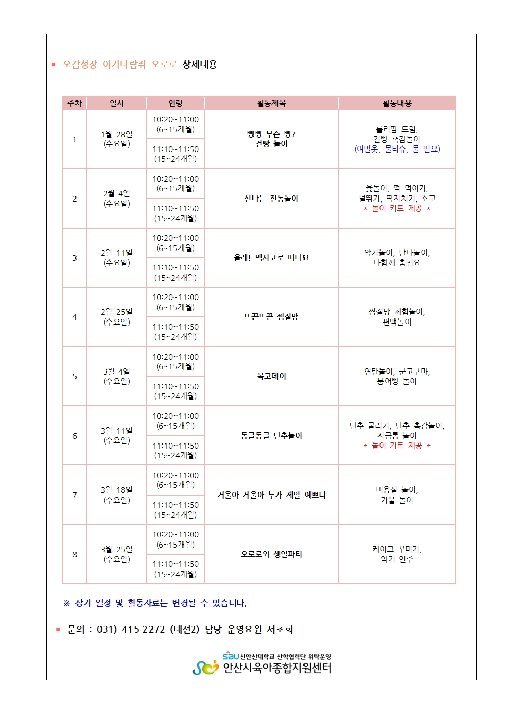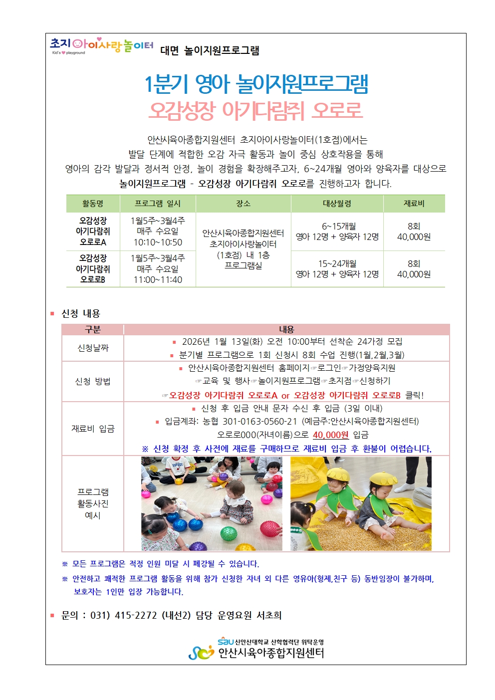 | 입금계좌 | 농협 301-0163-0560-21 안산시육아종합지원센터 |