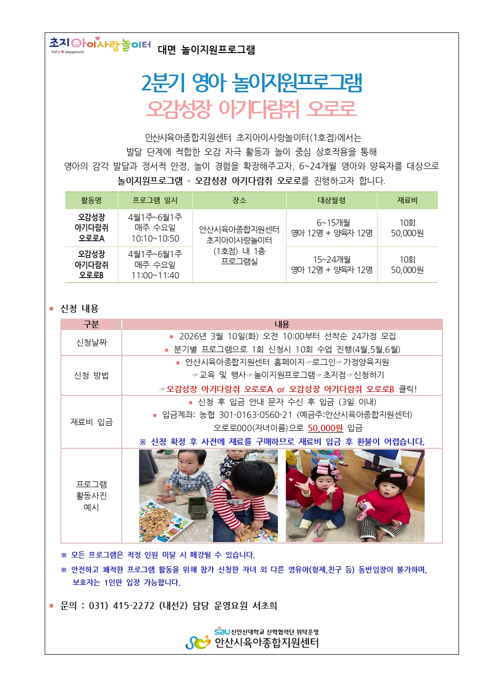 | 입금계좌 | 301-0163-0560-21 안산시육아종합지원센터 |