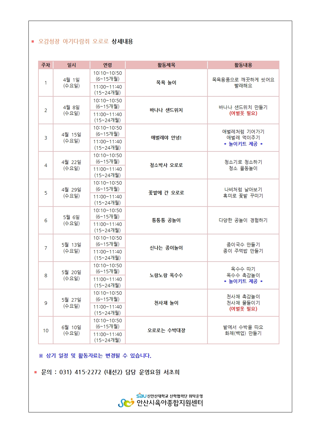 * 영아와 양육자가 함께 참여하는 프로그램입니다 *