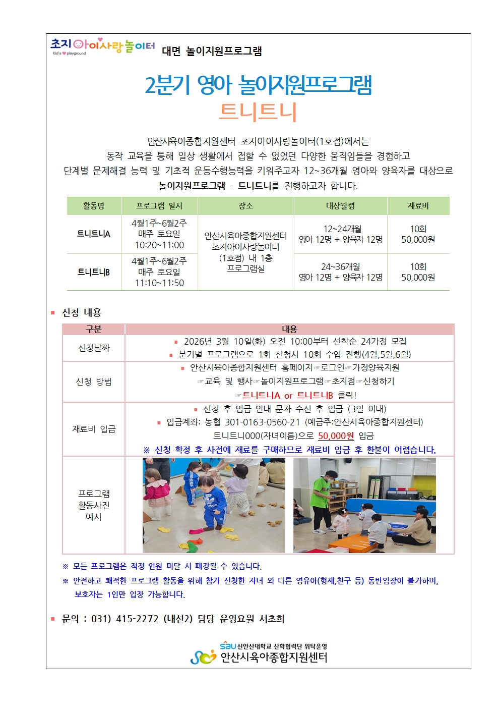 | 입금계좌 | 301-0163-0560-21 안산시육아종합지원센터 |