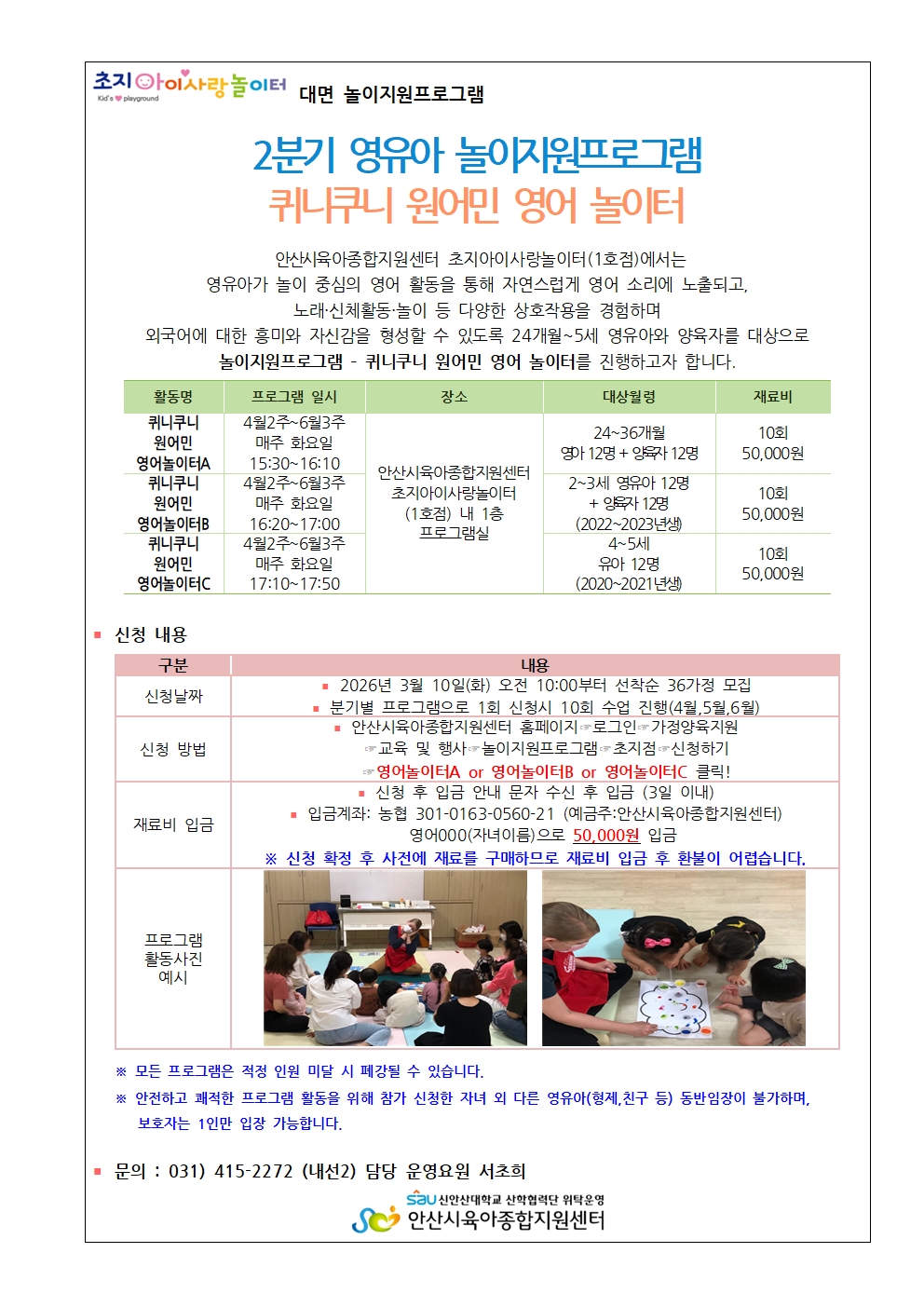 | 입금계좌 | 301-0163-0560-21 안산시육아종합지원센터 |