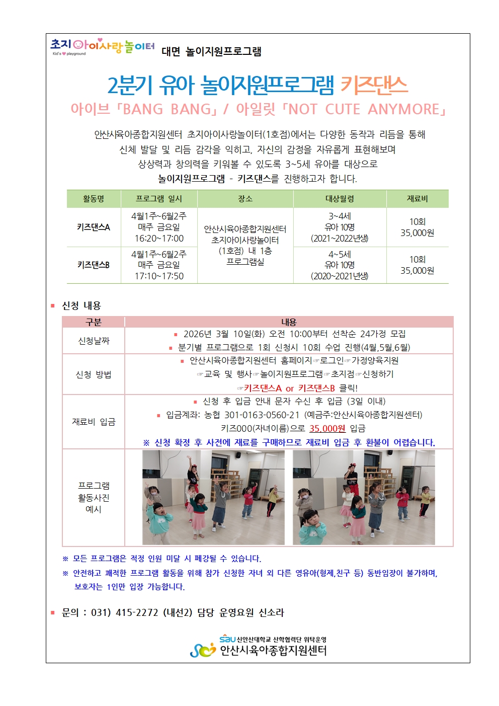 * 초지아이사랑놀이터(1호점)에서 대면으로 진행되오니 우측의 유의사항을 잘 읽어보시고 신청해주시기 바랍니다. *